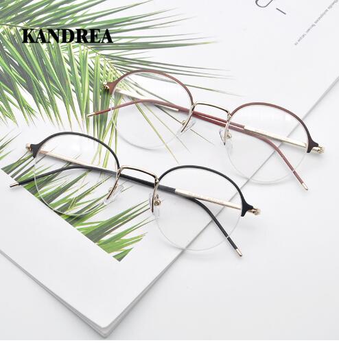 2021圆女生眼镜框透明金属半框眼镜女流行光学眼镜复古设计眼镜架